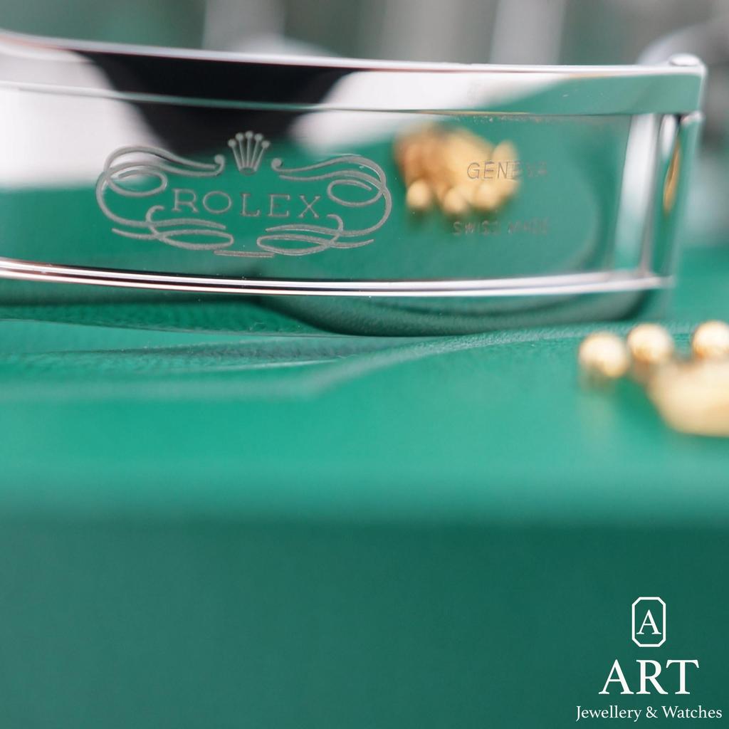 The Rolex GMT Master in 40mm steel is a refined travel companion with a bold yet balanced presence. Its Oyster bracelet offers a secure and smooth fit, while the dual time display brings quiet confidence to every journey. Offered with its original box and papers, it is a complete and enduring classic for daily wear.