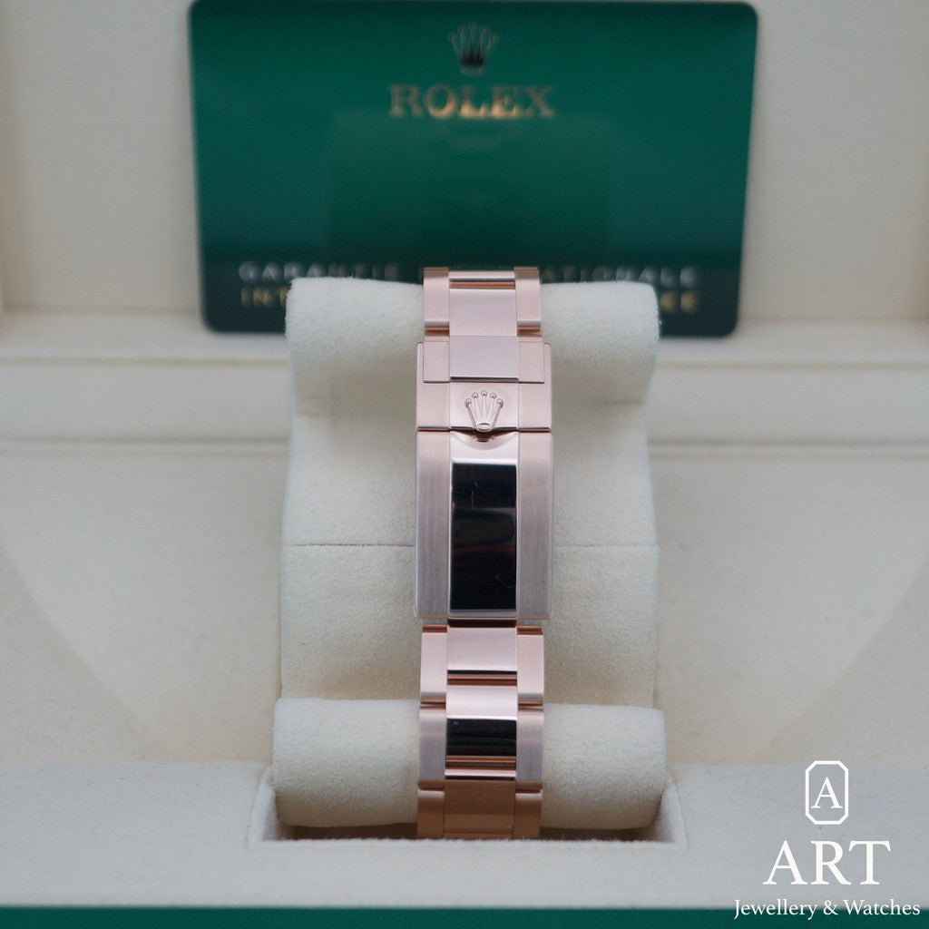 Everose gold kasalı Rolex GMT-Master II referans 126715CHNR, seçkin bir lüks ve hassasiyet aurası yayar. İki renkli kahverengi ve siyah seramik bezeliyle bu Saat, stilden ödün vermeden macera arayanlar için tasarlanmıştır. Zengin detaylara sahip kadranı ve parlak indeksleri, gece gündüz net okunabilirlik sağlar. Oyster bilezikle tamamlanan bu model, işlevsellik ve rafine estetiğin mükemmel dengesini yakalayarak kalıcı bir zarafet ve çok yönlülük ifadesi sunar.