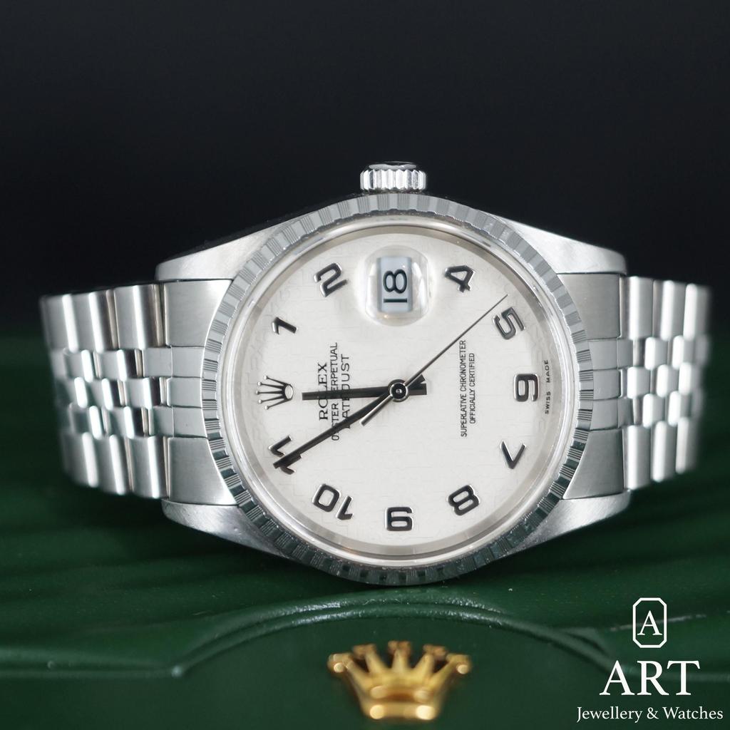 36 milimetrelik kasaya sahip Rolex Datejust 16220 referanslı model, zarafet ve dayanıklılığı kusursuz biçimde birleştiren ustaca bir tasarım. Paslanmaz Çelikten üretilen Saat, Beyaz Altın yivli bezel ve sade ama zarif bir kadranla tamamlanarak ölçülü bir sofistike hava sunuyor. Her ortam için uygun olan sağlam yapısı ve klasik estetiği, zamansız bir çekicilik sağlıyor. Konforlu Oyster bilezik, modelin seçkin duruşunu güçlendirerek onu rafine zevk ve kalıcı kalitenin bir sembolü haline getiriyor. Saatin her detayı, işçilik ve geleneğin bir yansıması.