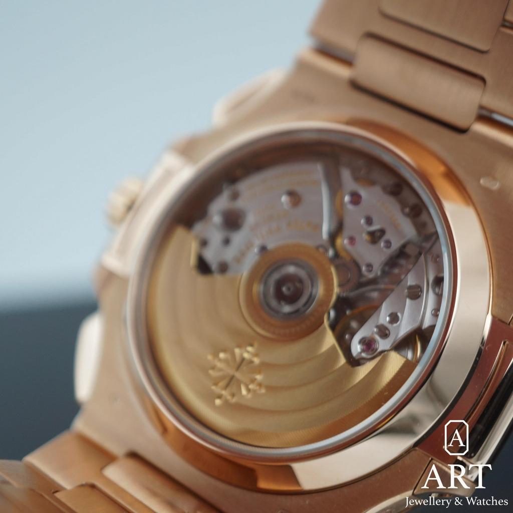 Sıcak pembe altın renginde, 40,5 mm çapında, dengeli ve kendinden emin bir duruş sergileyen zarif bir Patek Philippe Nautilus kronograf. İkonik kasa ve entegre Bileklik, pürüzsüz ve yontulmuş bir his sunarken, kadran spor ve zarafeti mükemmel bir uyum içinde bir araya getiriyor. Orijinal kutusu ve belgeleriyle birlikte sunulan bu saat, koleksiyoncular ve günlük kullanım için zarif bir seçimdir.